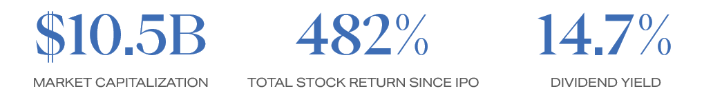 Total stock return is measured from AGNC’s May 2008 IPO through September 30, 2025; it includes price appreciation and dividend reinvestment, and dividends are assumed to be reinvested at the closing price of the security on the ex-dividend date. Past performance is not indicative of future results. An investment in AGNC stock involves risks and uncertainties; please refer to our annual report on Form 10-K and quarterly reports on Form 10-Q for a more complete description of the risks of our business. Source: Bloomberg.
