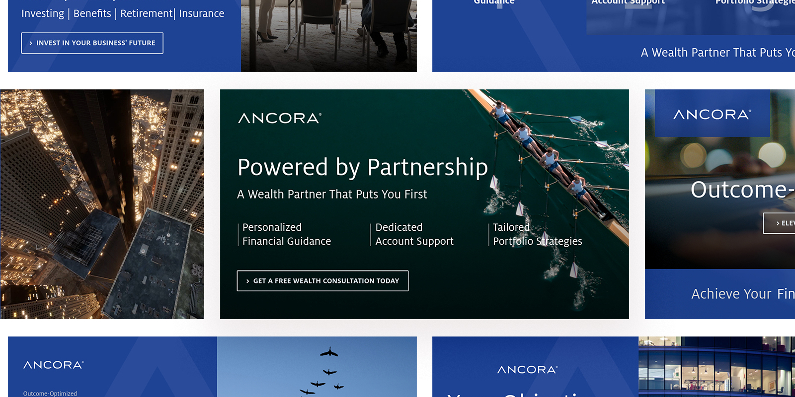 United in a desire to deliver excellence with a winning mindset, Ancora works with a broad range of clients, from individuals and families to business owners, non-profits and institutions. They offer solutions covering equity, fixed income, mutual funds and alternative investments, as well as wealth planning and retirement plan solutions — all delivered with a personalized service that’s focused on helping investors get more out of life. Ancora approached MBC Strategic for a comprehensive rebrand including website design and development, visual style, and suite of marketing materials that launched in 2018. We continue to work with Ancora, embarking on a website refresh in 2024, as well as ongoing content, analytics, social and design to support growth.