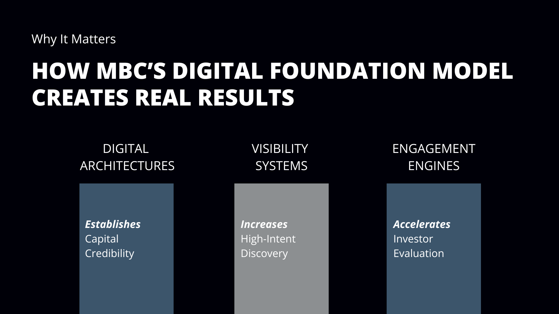 To help firms understand what truly matters, the MBC Strategic Digital Foundation Model organizes digital presence for investment firms into three foundational components that shape how investors interpret your organization:
